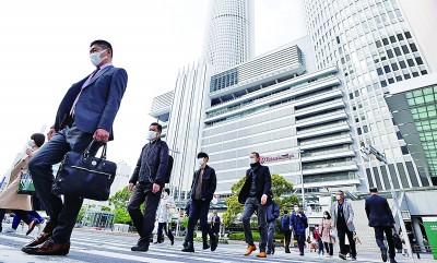 4月17日,在日本名古屋,行人戴口罩经过名古屋车站。新华社发