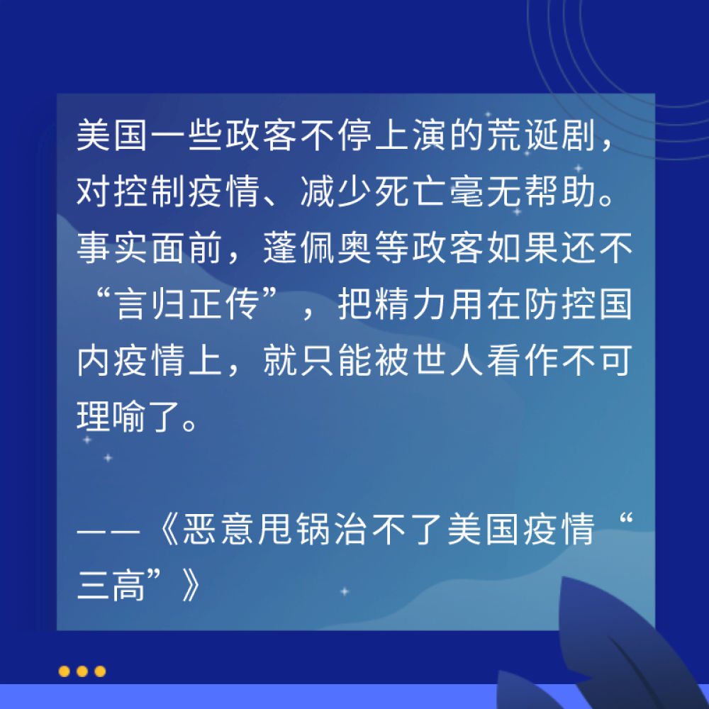 事实面前,蓬佩奥等政客如果还不“言归正传”,把精力用在防控国内疫情上,就只能被世人看作不可理喻了。(记者朱超)