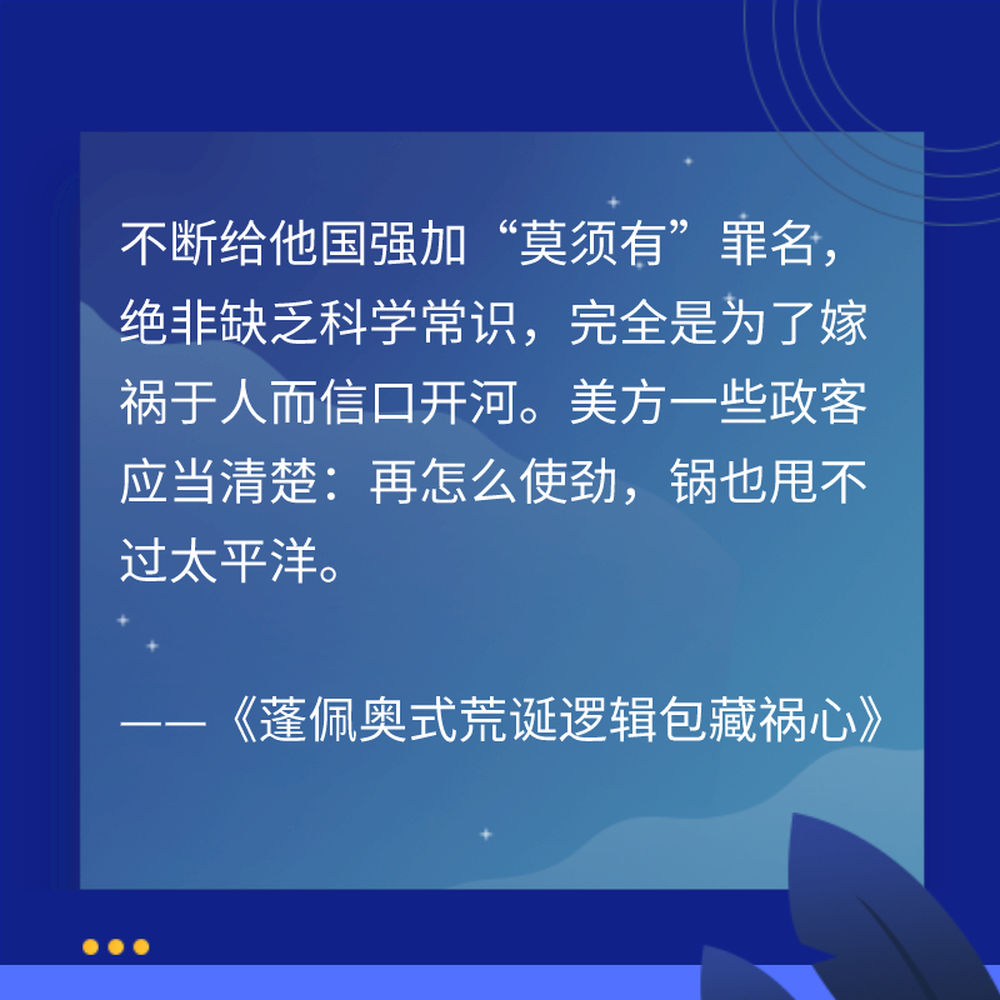 张口 “可能”,闭口“或许”。这些拥有蓬佩奥式逻辑的美国政客都是受过良好教育的“聪明人”,不可能不懂得基本逻辑,却不断给他国强加“莫须有”罪名,绝非缺乏科学常识,完全是为了嫁祸于人而信口开河。