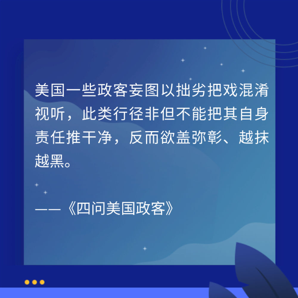 这些问题,请美方政客如实回答,给世人一个交代。(记者温馨)
