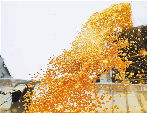 4月13日,在辽宁省鞍山市台安县新开河粮食储备库,玉米从传送带装载到货车上,运往粮食加工企业。 新华社记者 姚剑锋摄
