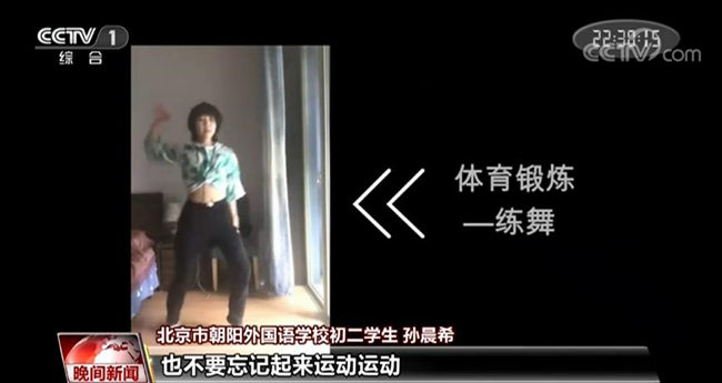 北京市朝阳外国语学校初二学生 孙晨希:在学习之余,也不要忘记起来运动运动,接下来就是我们的练舞时间啦。