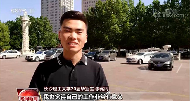 长沙理工大学20届毕业生 李薪同:学校在疫情期间搭建了云就业平台,我也会在学习之余去协助老师开展一些就业工作,同学顺利找到了自己的工作岗位,我也觉得自己的工作非常有意义。