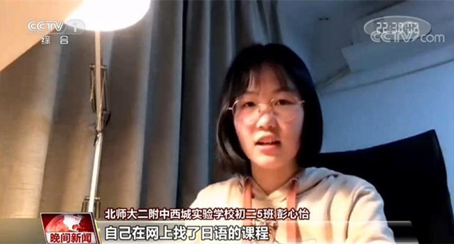 北师大二附中西城实验学校初二5班 彭心怡:在这段时间里,自己在网上找了日语的课程,跟老师一对一学习。我希望大家也可以合理安排自己的学习内容,好好利用时间。