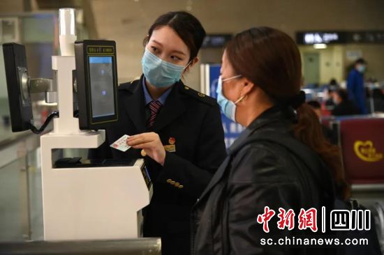 王天慧帮助旅客进行电子客票核验。 绵阳车务段提供