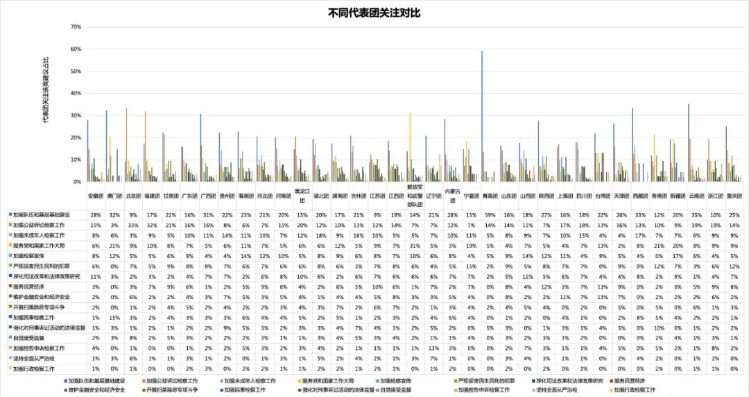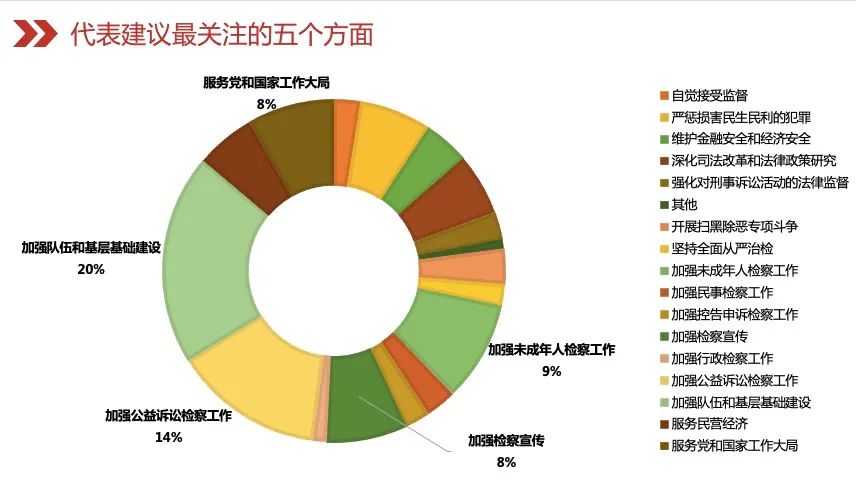通过后台大数据精准分类统计,检察公益诉讼工作是过去一年代表委员建言的高频词,共建言351次。民生民利、检察公益诉讼、严惩金融犯罪等也是代表委员的关切点。