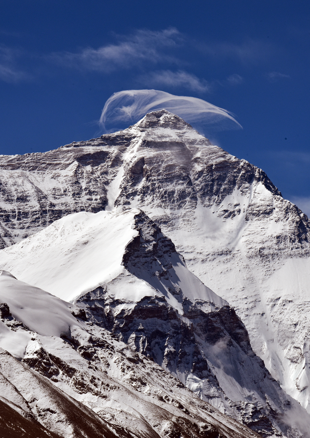 正掠过珠穆朗玛峰顶