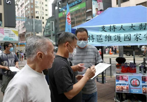 图说:5月23日,香港市民在街头签名,支持国家安全立法 新华社