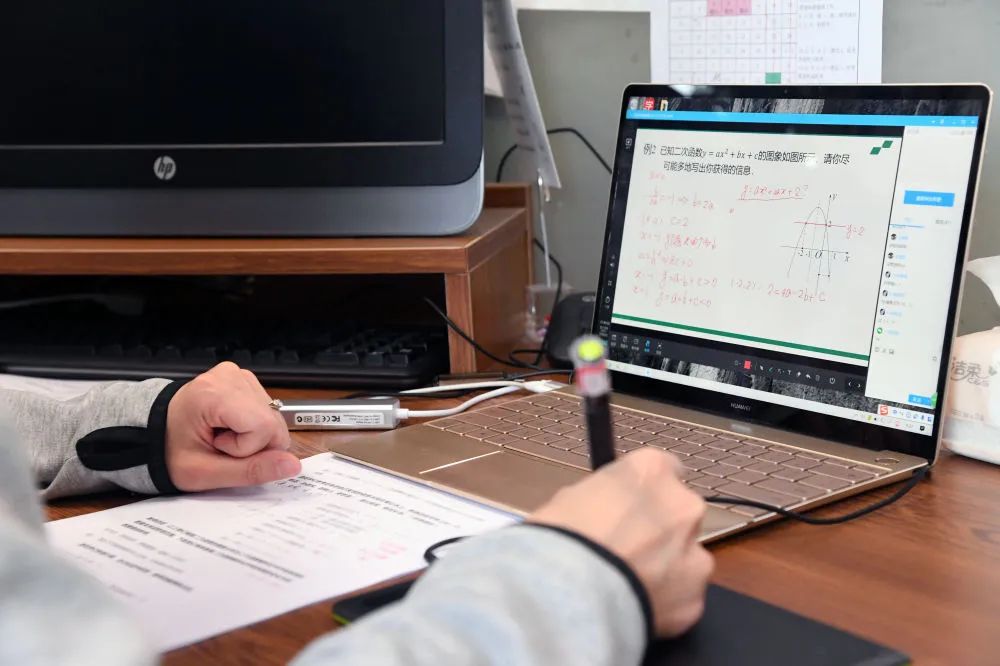 4月14日,在北京科技大学附属中学,学生在线上初三数学课。新华社记者 任超 摄