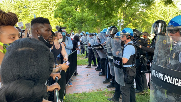 5月30日,大批示威者在白宫附近与警方对峙。图源:央视新闻