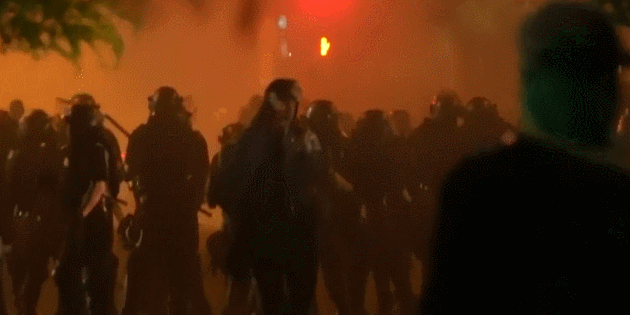 大约凌晨3点30分,警察向人群发出了两次警告,然后一排手持盾牌的警察向高呼“黑人的生命很重要”(black lives matter)的人群逼近。