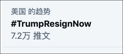 同时,“特朗普原地辞职”的话题也冲上了推特热门。