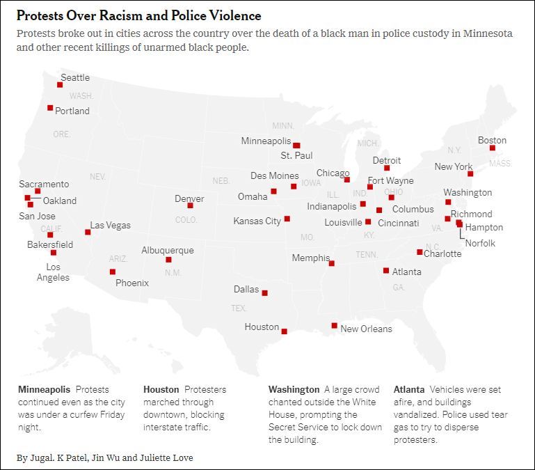 正如《纽约时报》29日的专栏文章《当然会有抗议,这个国家让黑人失望了》所说,整个美国正努力从疫情中恢复正常,而正常的生活不可避免地包括“一名警察杀死一名手无寸铁黑人男子,引发抗议”这样的事,这个国家正努力回到它熟悉的状态……