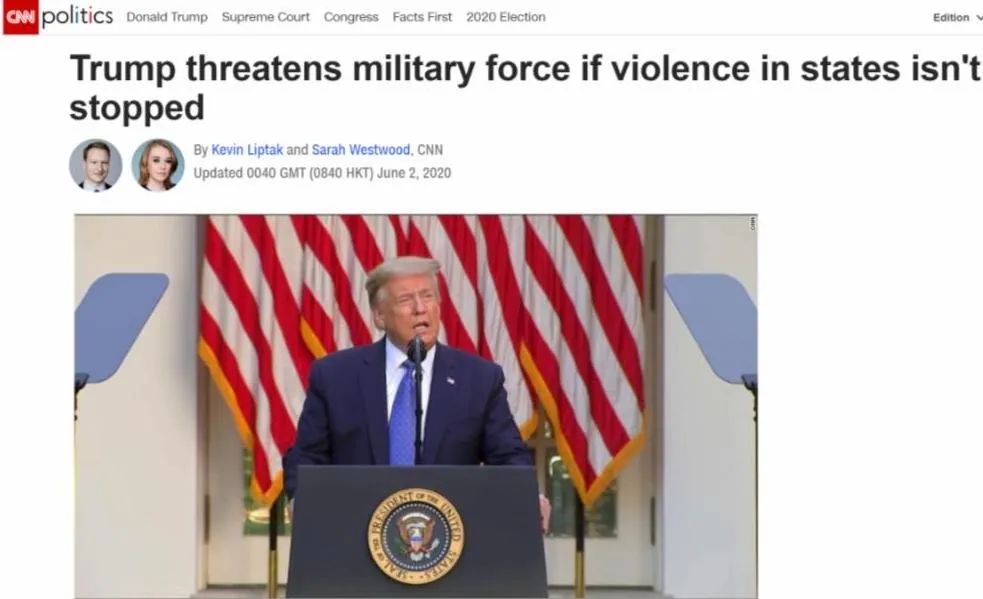 特朗普威胁称如果各州民众不再停止“暴力”将会动用联邦军队(图片来源:CNN)