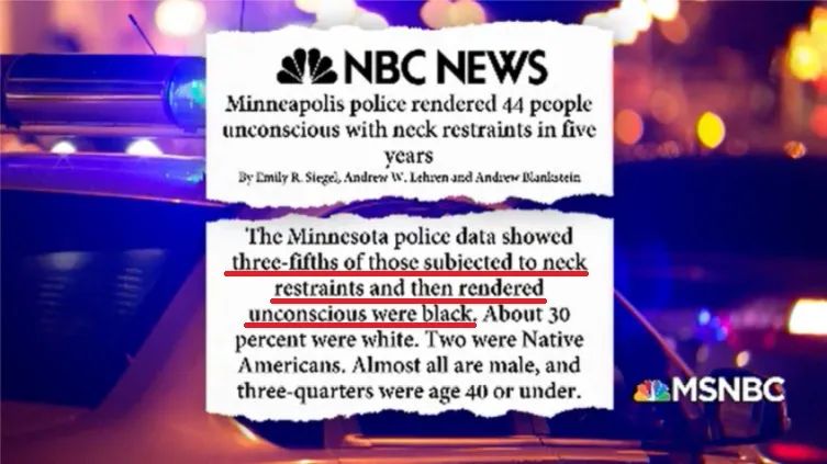 统计数据显示,约有60%因“颈部约束”而失去知觉的抓捕对象为非裔(图片来源:NBC)