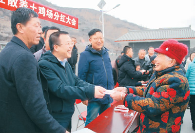 今年1月19日,土鸡场收益进行了第二次分红,分红7.88万元。两次分红合计16.19万元,占到收益的77%。与此同时,土鸡场充分发挥带贫益贫效益,为6户贫困户每户免费修建标准化鸡舍1间,发放土鸡50只,带动贫困户养鸡300只。产出鸡蛋后,如果贫困户没有销路,可交由养鸡场包销。同时,养鸡场还雇佣建档立卡贫困户3人。