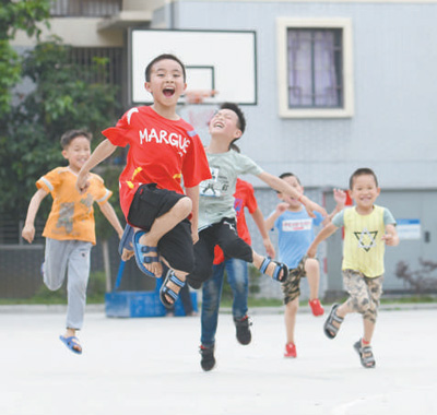 在广西罗城仫佬族自治县易地扶贫搬迁安置新区,几个小朋友正在小区里玩耍。蒙增师摄(人民视觉)