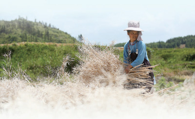 贵州省黔东南苗族侗族自治州丹寨县村民采收油菜籽。黄晓海摄