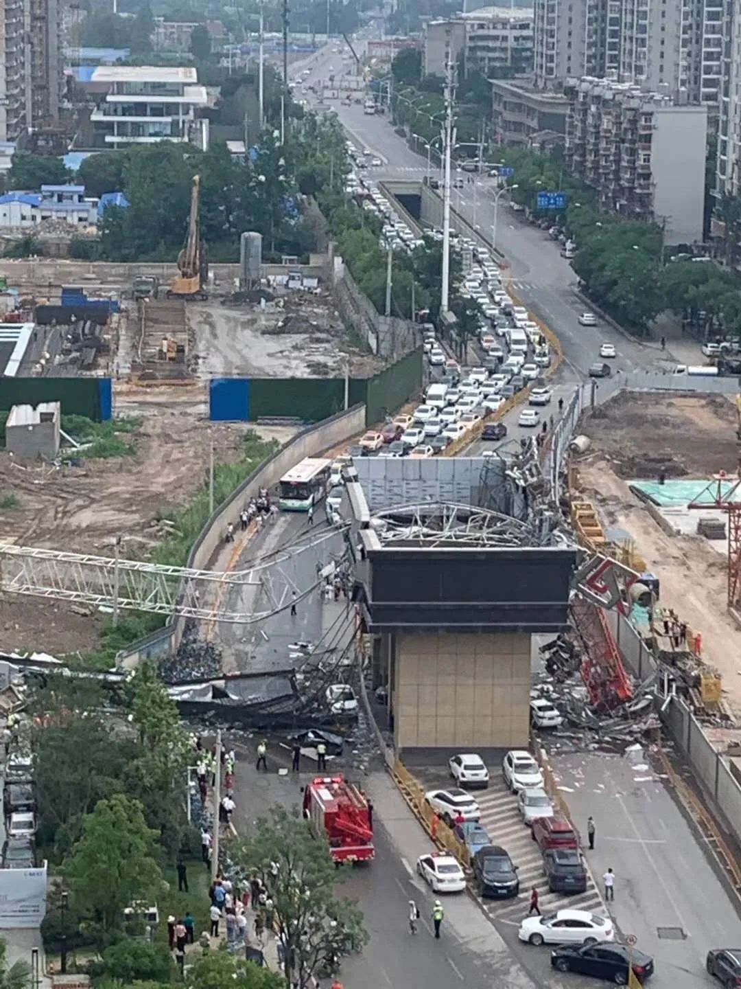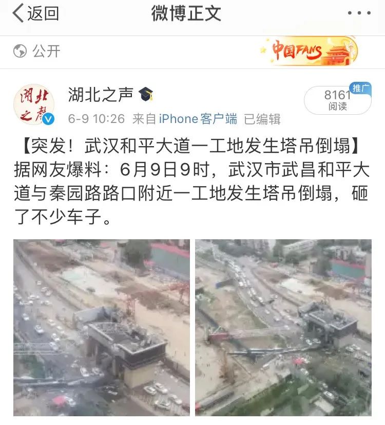 突发!武汉和平大道一工地发生塔吊倒塌 2人受伤