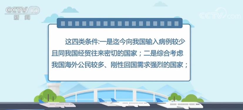 这四类条件:一是迄今向我输入病例较少且同我经贸往来密切的国家;二是综合考虑我海外公民较多、刚性回国需求强烈的国家;三是满足远端防控措施,可有效降低前端疫情输入风险的国家;四是境内外有复工复产需要、已同我国建立“快捷通道”的国家。
