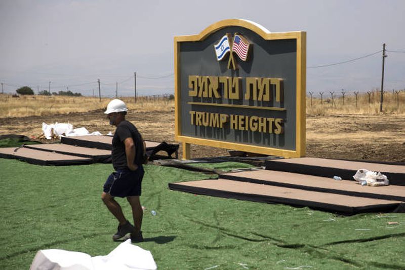 同年6月,以色列政府在戈兰高地举行特别会议,批准在戈兰高地北部的布鲁希姆地区新建一个名为“特朗普高地”的犹太人定居点。随后,内塔尼亚胡宣布在这片叙利亚被占领土上建设该犹太人定居点,用于感谢特朗普承认以色列对戈兰高地拥有“主权”。