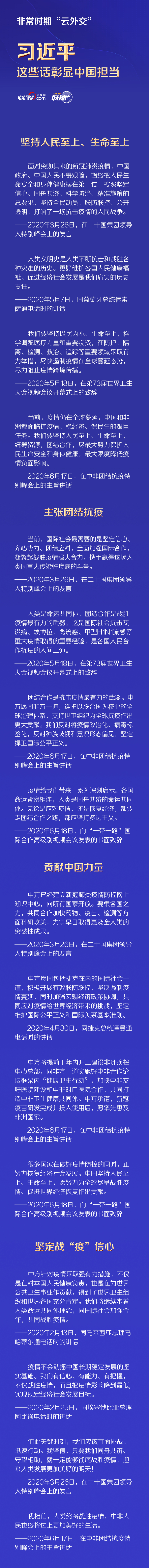 央视网《联播+》特梳理相关讲话,与您一起学习感悟习近平主席“云外交”中的中国担当。