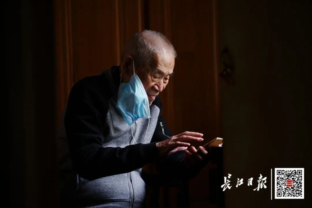 居家生活中的韩老刷手机。长江日报何晓刚 摄
