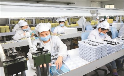 山东省荣成市积极稳外资、送政策、送服务、送信心,推动外资企业安全有序复工生产,协助企业做好产能增加、订单恢复等一系列工作。图为荣成市一韩资企业工人正在车间工作。王福东摄(人民视觉)