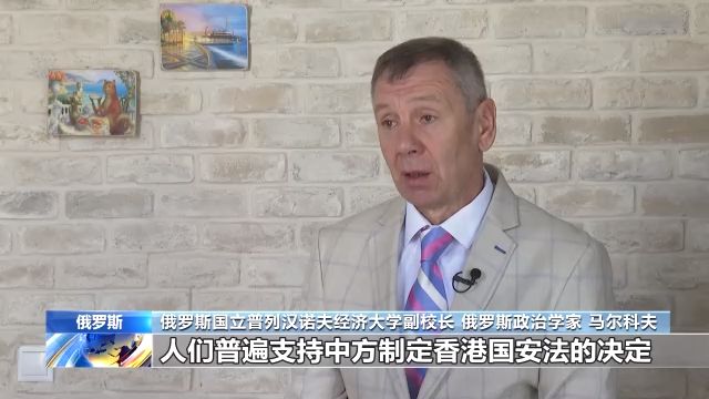 俄罗斯国立普列汉诺夫经济大学副校长 俄罗斯政治学家 马尔科夫:在俄罗斯,人们普遍支持中方制定香港国安法的决定。认为这是果断的举措,有利于维护国家的主权、维护内地与香港的关系,保护香港居民免受以美国情报部门为首的、外国势力组织的暴乱的影响。中方的行动合法、合理,符合现实。中国完全有权这样做,国际社会应当予以支持。