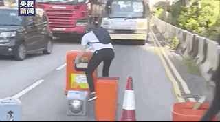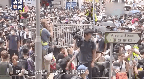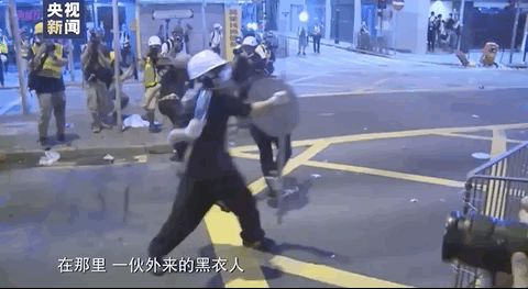 黄家伦:我们到现场时,看到马路上有六七十名暴力示威者,利用铁栏、垃圾桶以及一些杂物堵塞车路,我们就进行了驱散行动。当时暴力示威者用一些硬物扔我们,包括砖头、水瓶、雨伞、头盔等等。