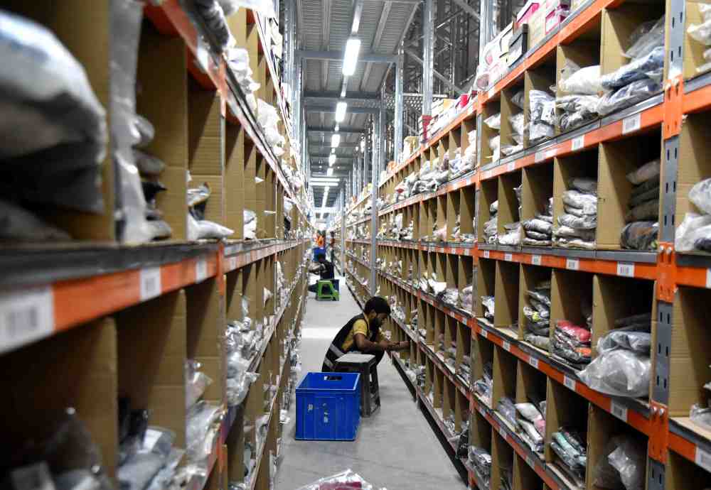 2018年6月25日,在沙特阿拉伯利雅得JollyChic的仓库,几名工人摆放商品。JollyChic是执御公司打造的跨境购物网站。新华社记者王波摄