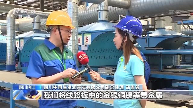 四川中再生资源开发有限公司副总经理 郑吉勇:我们将线路板中的金银铜锡等贵金属进行提炼,将里面的重金属,有害物质用无害化绿色环保工艺进行处理,真正实现了再生资源的最大化利用,避免了环境污染。
