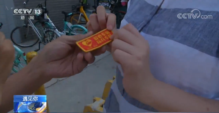 7月8日下午高考结束后,王志忠顺利把考生送回家。临别的时刻,他郑重地把胸前这枚标志送给了自己服务的考生。