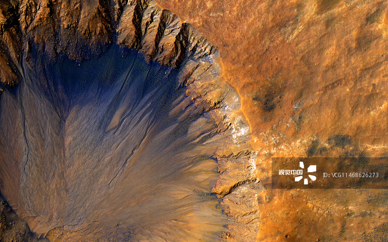 2015年6月8日消息,美国NASA公布了火星侦察轨道器上的相机拍到的一张火星陨石坑的图片。图片中的这个陨石坑,就地质学角度来说,还是一个“新鲜出炉”的陨石坑。这个陨石坑宽1公里,拥有相对锋利的边缘和保存良好的排出物。内部斜坡也十分陡峭,沟壑遍布。