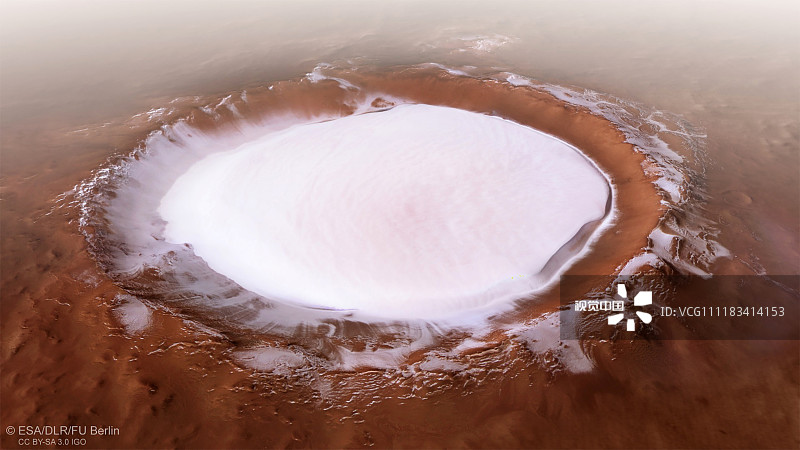 2018年12月27日讯,欧洲航天局20日在其网站上公布了一组由“火星快车”号探测器拍摄到的、位于火星北极附近的科罗廖夫环形山的俯瞰图像。图像显示,科罗廖夫环形山凹陷山口内一片雪白,好似无人踏足的雪原。欧洲航天局介绍称,覆盖凹陷山口的白色物质并不是雪,而是1.8千米厚的冰层,因其特殊的结构和位置终年不化。