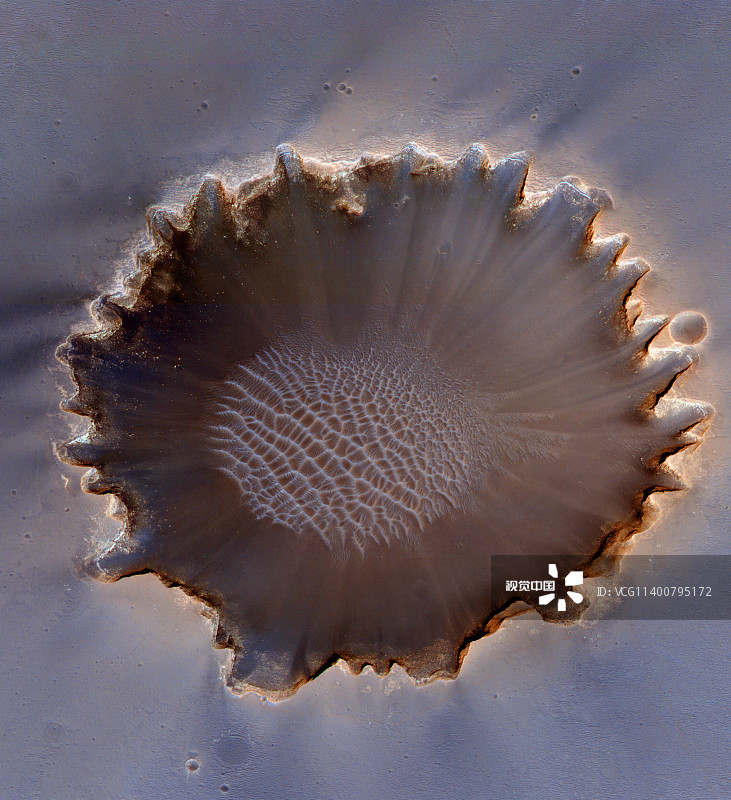 2009年8月12日消息,美国宇航局(NASA)公布了其火星探测器在7月18日拍摄到的火星火山口照片。这张使用了高清晰度成像科学实验照像机拍摄照片,显示了位于火星子午高原地区宽达800米的维多利亚火山口。