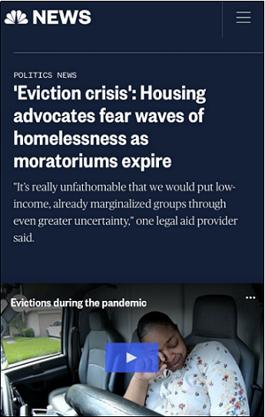 △美国全国广播公司称,随着暂停驱逐令到期,美国将出现无家可归潮