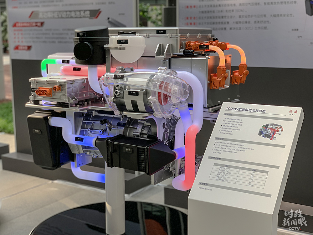 △这是即将搭载红旗HS5车型使用的高度集成氢燃料电池发动机。(总台央视记者邢彬拍摄)