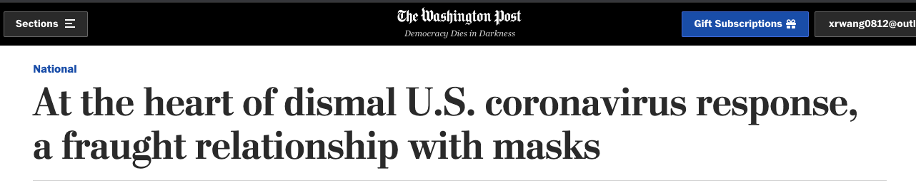 《华盛顿邮报》指出,在特朗普的狂热支持者当中,反对口罩的声音一直存在;在互联网上,关于口罩的阴谋论到处流传;在州议会大厦前,活动人士针对戴口罩行为发起抗议,呼吁“自由”。丛生的乱象中,口罩已经成为美国大选当中的一个辩题,成为了文化战争中的一个符号。