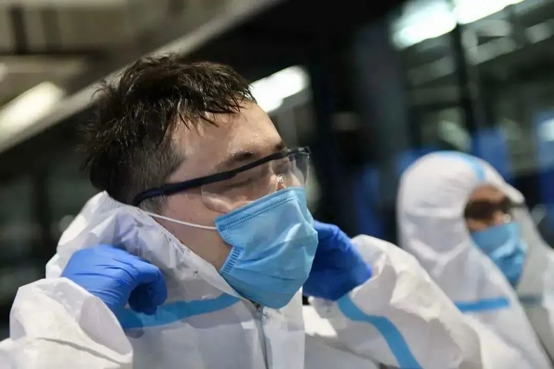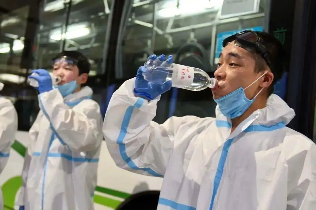 自今年疫情发生以来,上海真南路停车场承担着巴士三公司二车队108辆公交车的保洁和消毒任务。近段时间,随着上海气温升高,穿好防护服的一刹那,他们每个人都不由自主地去抹脸上的汗珠,每次保洁尚未结束,就已经大汗淋漓。