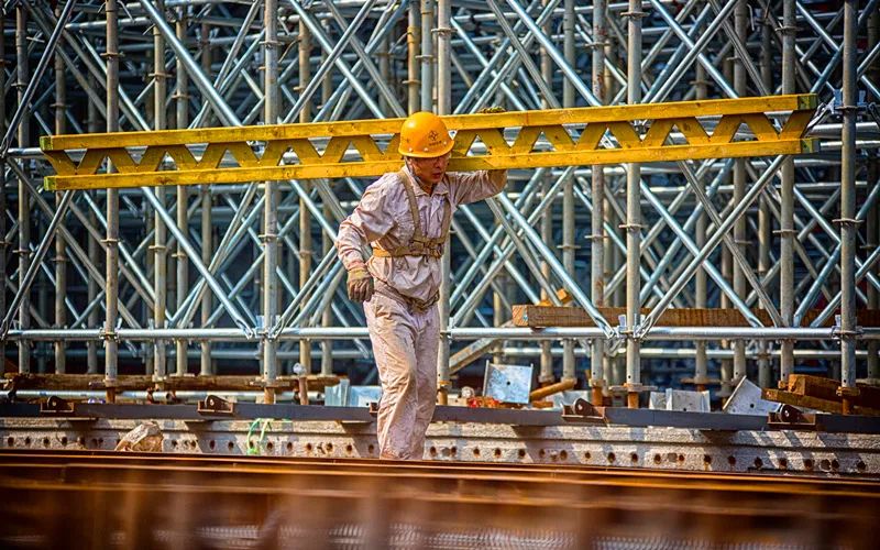 作为雄安新区“四纵三横”区域高速公路网的重要组成部分,京雄高速是连接北京城区和雄安新区便捷的高速通道。图为京雄高速现场人员头顶烈日施工。