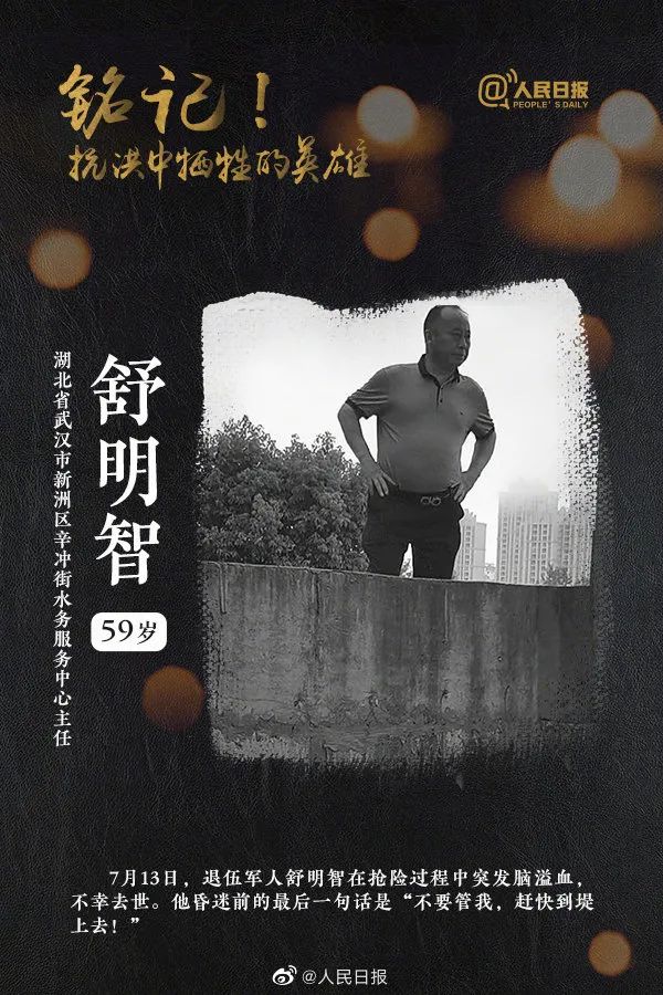 抗洪抢险一线,无数人日夜奋战,只为守护一方平安。洪水来袭,他们奋不顾身冲上前,甚至献出了宝贵生命。消防指挥员陈陆、防汛干部曹德芳、村支书刘水存、货运司机郑义……铭记抗洪中牺牲的英雄!