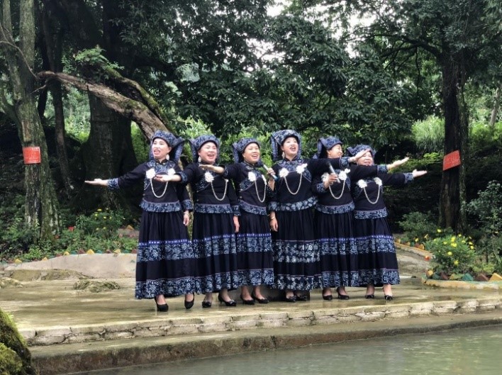 龙里县“美婆姨山歌队”用山歌宣传“移风易俗”新思想 。周瑾 摄
