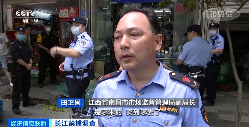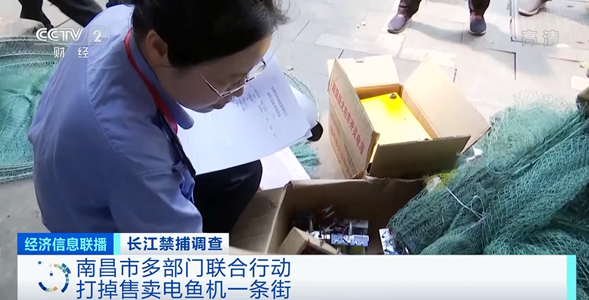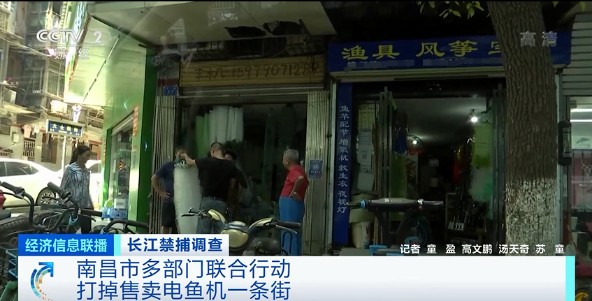 江西省南昌市市场监督管理局副局长田卫国:从经营上来讲,它是禁止经营捕鱼工具,我们发现要马上收缴,电池销售也超出经营范围的,要进行查处。我们要查清源头,是哪来的,卖到哪去了,联合检查,直到打绝违禁捕鱼的工具。