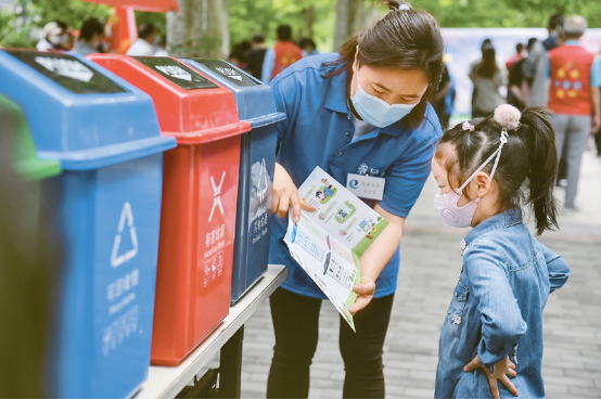 实行垃圾分类,关系广大人民群众生活环境,关系节约使用资源,也是社会文明水平的一个重要体现。图为2020年5月23日,社区工作人员和志愿者走进北京市东城区西花市南里东区,举办垃圾分类宣传活动,为社区居民讲解垃圾分类知识。新华社记者 彭子洋/摄