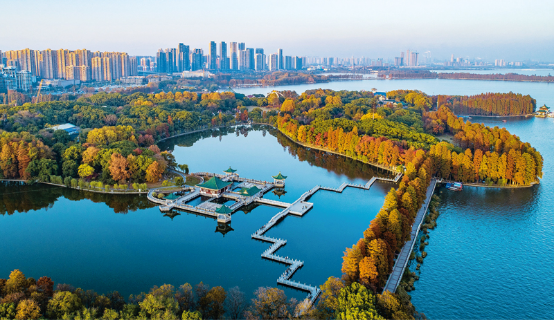 长江是湖北省经济发展的“黄金主轴”。目前,湖北省正以系统性举措推进山水林田湖草一体化修复,实施长江防护林建设、水土流失治理、河湖湿地保护等一批生态重点工程,优化长江生态环境,持续改善长江水质,积极探索绿水青山转化为金山银山路径,着力打造一条全新的绿色生态廊道,筑牢长江中游重要“生态屏障”。图为无人机拍摄的湖北省武汉市东湖绿道。新华社记者 肖艺九/摄