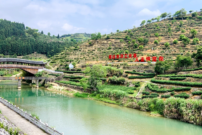 走进福建宁德坦洋村,“喝过坦洋工夫茶,人走情常在”几个红色大字镶嵌在绿水青山之中,十分醒目。这是习近平总书记30年前说的一句话。