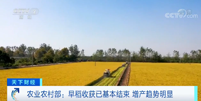 农业农村部昨天发布,目前早稻收获已基本结束,今年早稻生产呈现三大亮点,增产趋势明显。