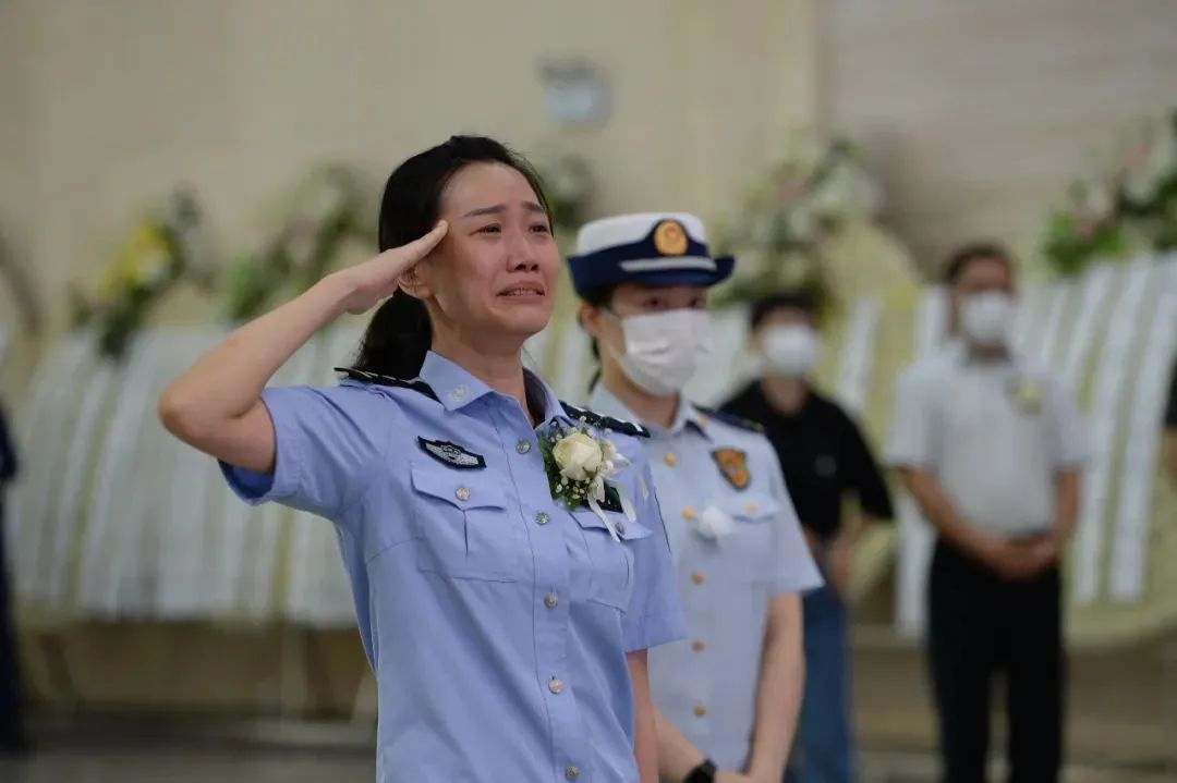 应急管理部批准陈陆为烈士、追记一等功。7月30日,陈陆的追悼会在安徽合肥举行,妻子王璇撕心痛哭,敬礼向丈夫告别,便有了那张让人揪心的照片。