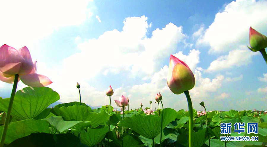 怡山湾荷花园。新华网发 柳斌 摄